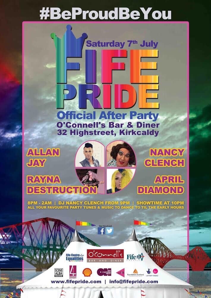 Join us at Kirkcaldy’s premier bar and diner, O’Connell’s for the official Fife Pride After Party! Enjoy a big rainbow Pride party from 8pm til 2am.