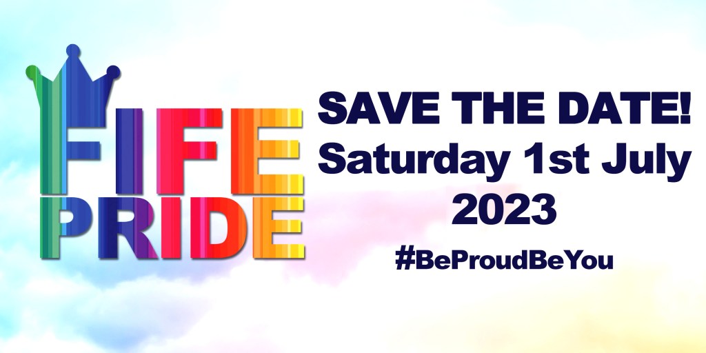 We are delighted to announce that we have selected a potential date for Fife Pride 2023 as Saturday 1st July. Pencil it in your diary – however to make it happen this year we urgently need your help