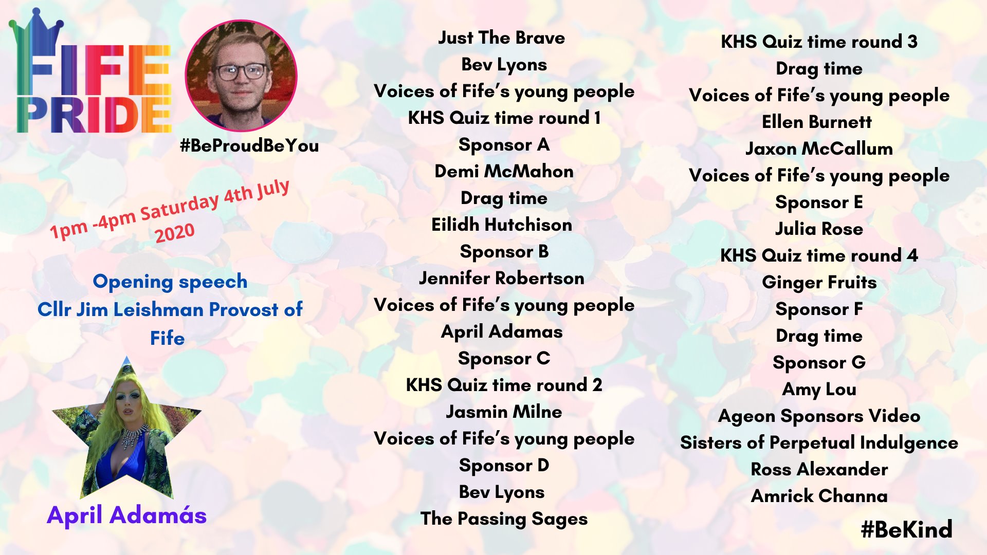 The Fife Pride Team invited everyone to join us on Facebook on what would have been Pride day, for a virtual celebration of love, resilience, and LGBTQIA+ visibility across Fife.
